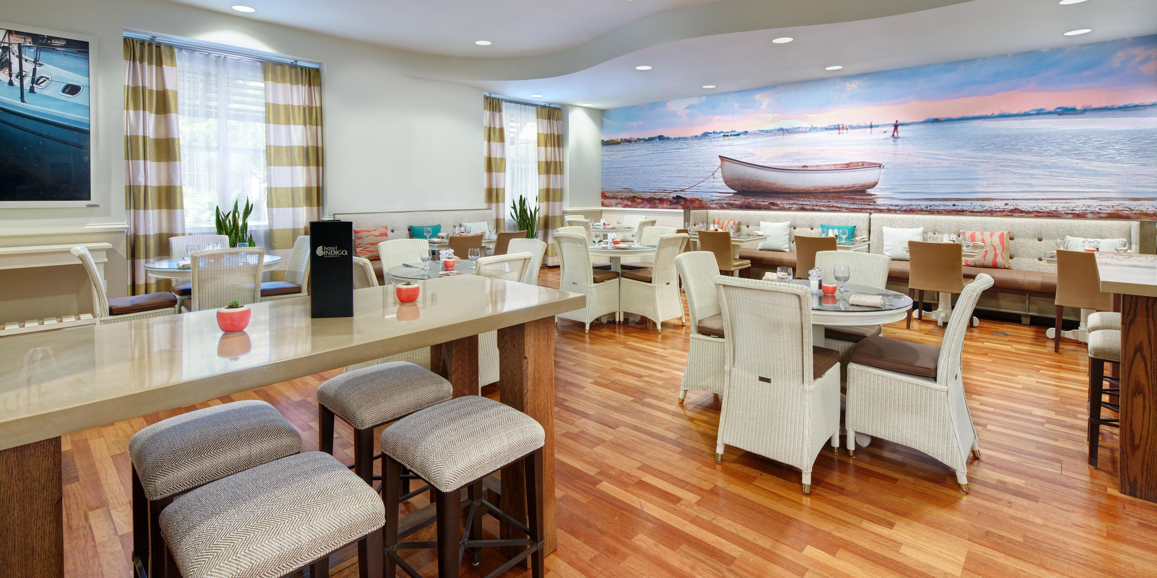 The H20 Bistro is located inside the lobby of Hotel Indigo Sarasota, Sarasota's number one boutique hotel! On the edge of downtown and right in the middle of the arts district, The H20 Bistro offers the perfect location for breakfast, dinner and private parties. We are committed to bringing you the freshest local produce, seafood, meats, dairy and eggs that Sarasota county has to offer.