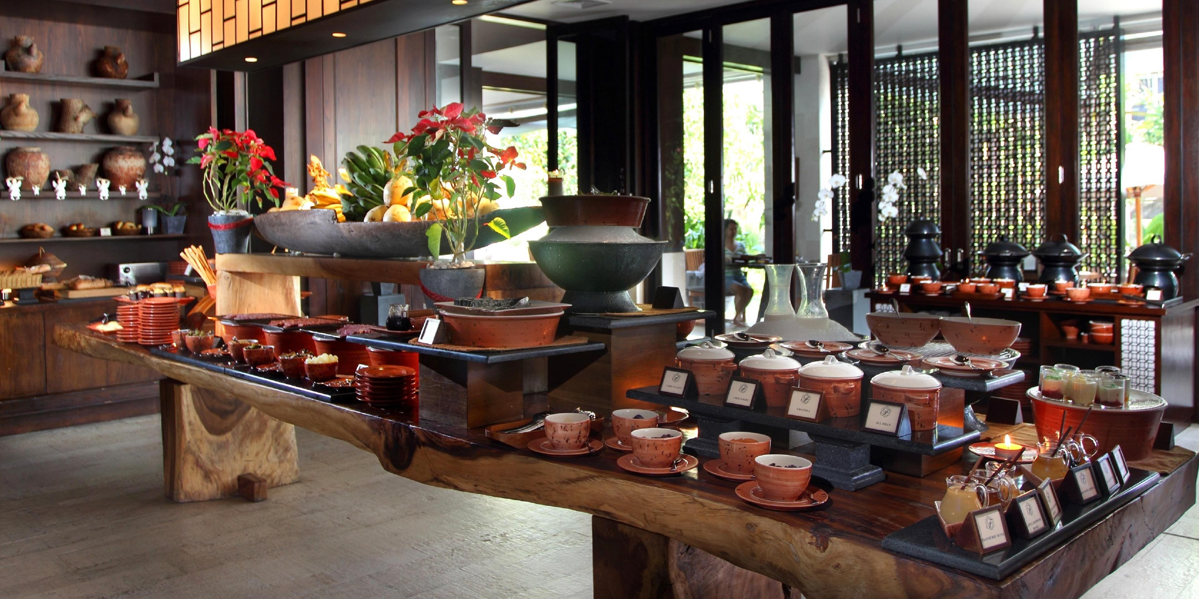Layang Layang Restaurant epitomizes Bali natural beauty and earthiness. Meaning Kite in Bahasa, Layang Layang open air dining room captures the sea breeze and puts guests at ease. Indigenous wood panelling and Kalimantan marble flooring give the restaurant a soul that is uniquely Indonesian. Layang Layang also offers an exquisite outdoor dining experience amidst the hotel lush tropical garden surrounded by a flowing water feature. Menu and operating hours subject to change