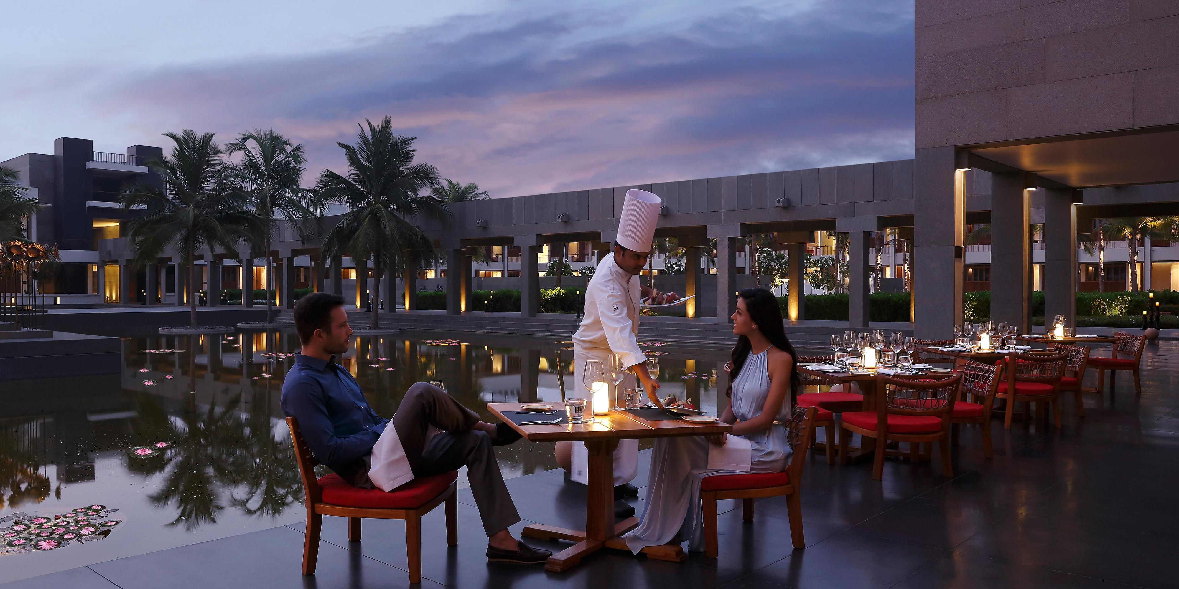 Gourmet dining options include The Melting Pot: Market Cafe with three live kitchens that serves the best of European, Asian and Peninsular Indian cuisine, a Chinese Specialty Restaurant, Tao Of Peng and KoKoMMo beachside grill & seafood restaurant.