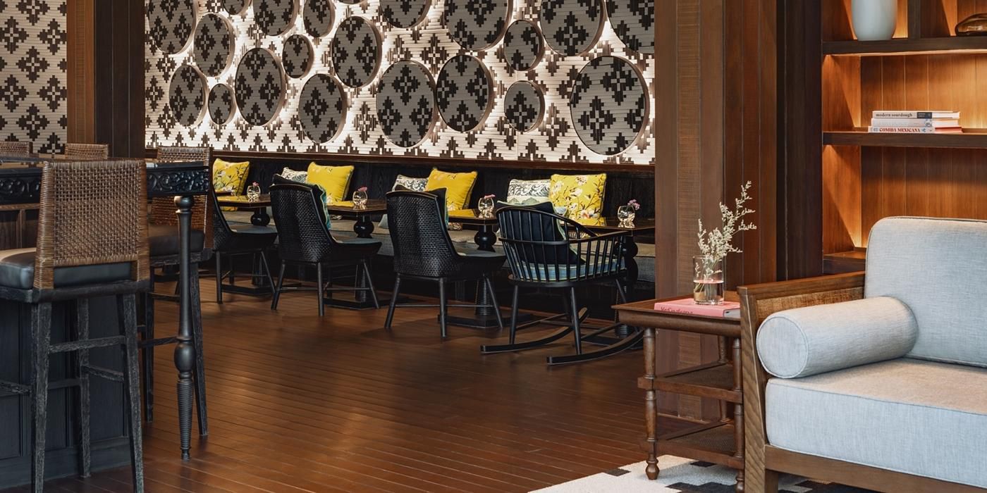 Bữa sáng đến tối và uống cà phê boho sang trọng nằm trong phòng trưng bày lấy cảm hứng từ thực vật, trưng bày các tác phẩm nghệ thuật địa phương của Thái Lan, phong cách sống thủ công mỹ nghệ và hoa lá.